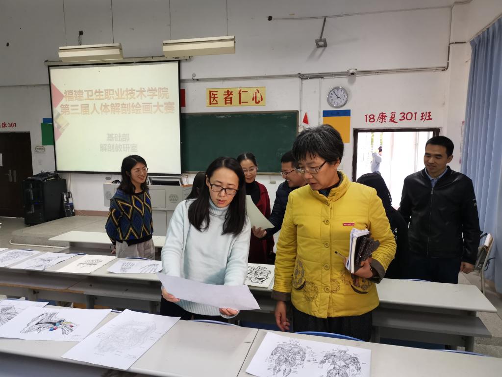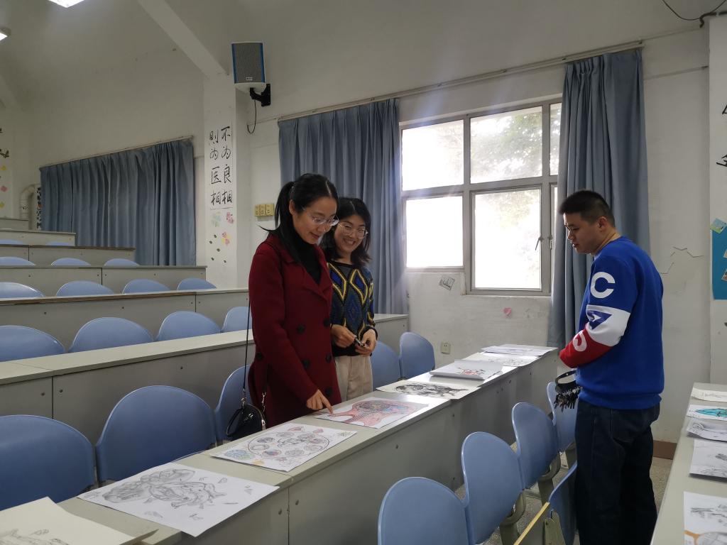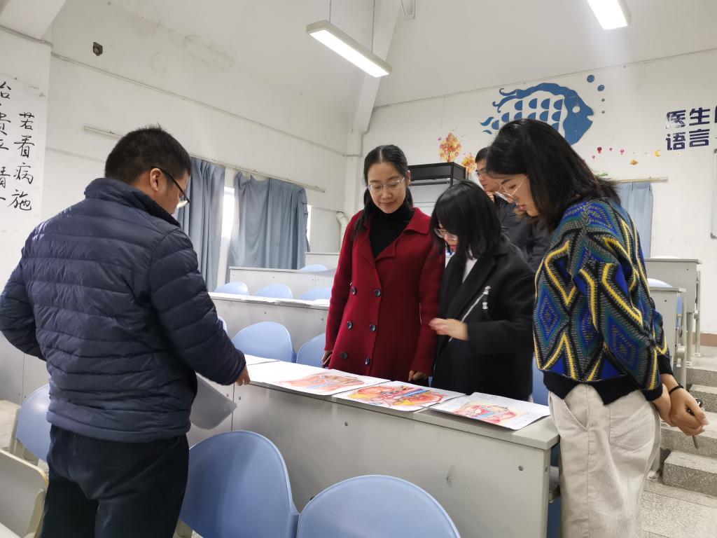 12月26日,先由解剖学教研室教师根据参赛作品要求对绘画作品进行初步筛选。接着,基础部叶菁主任、美育教研室主任宋枫老师,和教研室的老师们一起作为评审,从科学性出发、结合创意、美学等多角度对学生的作品进行再次评选。经评委组讨论,确定出一、二、三等奖获奖作品33件。