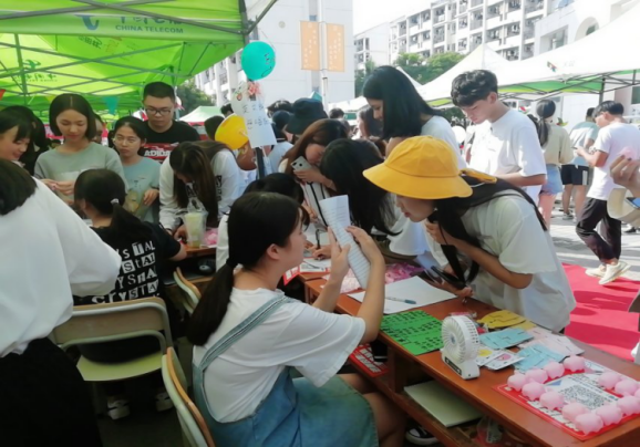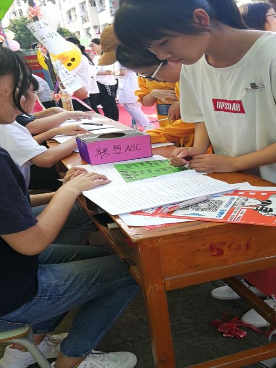 为以习近平新时代中国特色社会主义思想为指导,贯彻落实《福建省社会科学普及条例》,充分发挥社会科学“认识世界、传承文明、创新理论、资政育人、服务社会”的功能作用,广泛开展内容丰富、形式多样的社会性、群众性、经常性社会科学普及活动,大力宣传中华人民共和国成立70周年取得的辉煌成就。基础部英语俱乐部于2019年10月10日在学院“明湖一条街”举办了以“礼赞新中国 奋进新时代”为主题的社团游园活动,活动内容包括庆祝中华人民共和国成立70周年朗读活动、联想单词活动、“扫楼”宣传等内容,并于2019年10月17下午与18日晚上分别教学楼209,112教室展开了社团纳新活动。基础部外语教研室作为指导参加了此次活动。