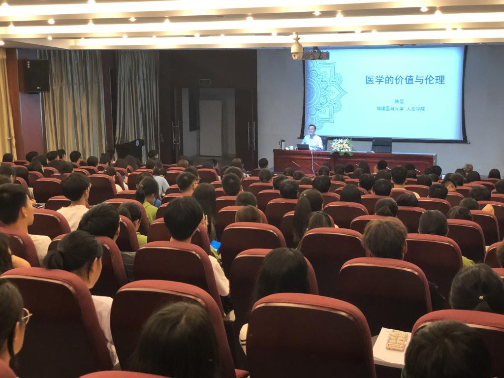 陈教授为用医学先辈的实例诠释了“悬壶济世”的伦理情怀;用具象有力的医学论据论证了医学“伦理”与“道德”间的关系与区别;用真实生动的案例分享了当面临医学实践中的伦理难题时该如何判断抉择,从而给患者最佳的指引方向。陈教授渊博的知识、风趣幽默的话语,使得在座师生受益匪浅。