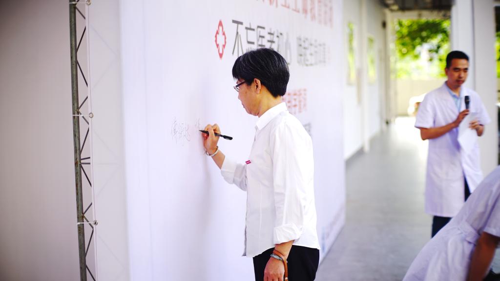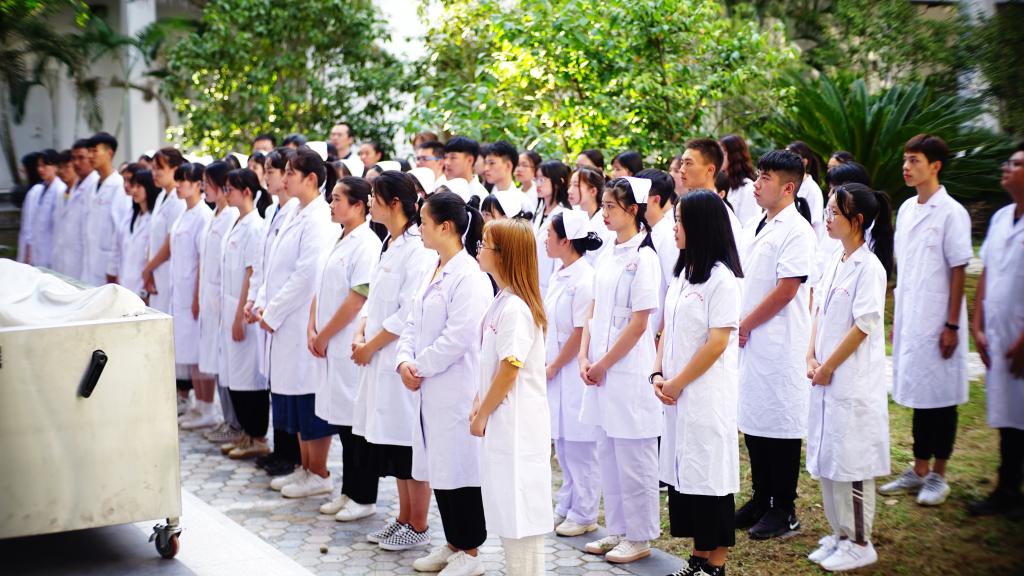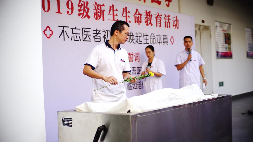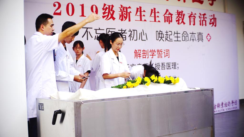 最后,参加活动的全体人员向“无言良师”敬献菊花、在签字墙签字并合影留念。参加活动的学生表示生命教育活动的举行,让他们深刻领会解剖学誓言和“业精德诚”校训的内涵,他们认识到身上的责任,加深对生命的尊重和敬畏。今后将不负“无言良师”的奉献,真正做到“除人类之病痛,助健康之完美”。