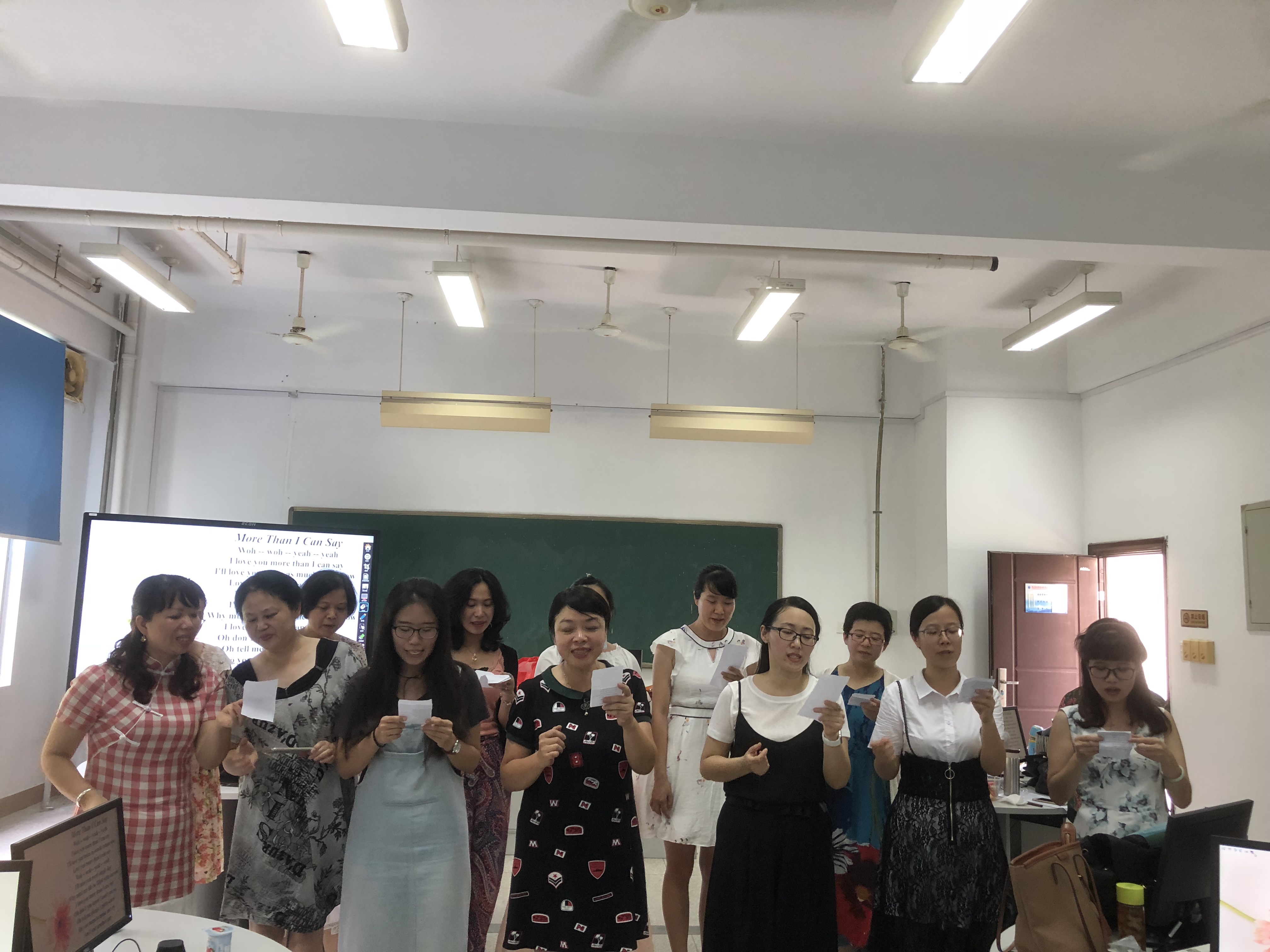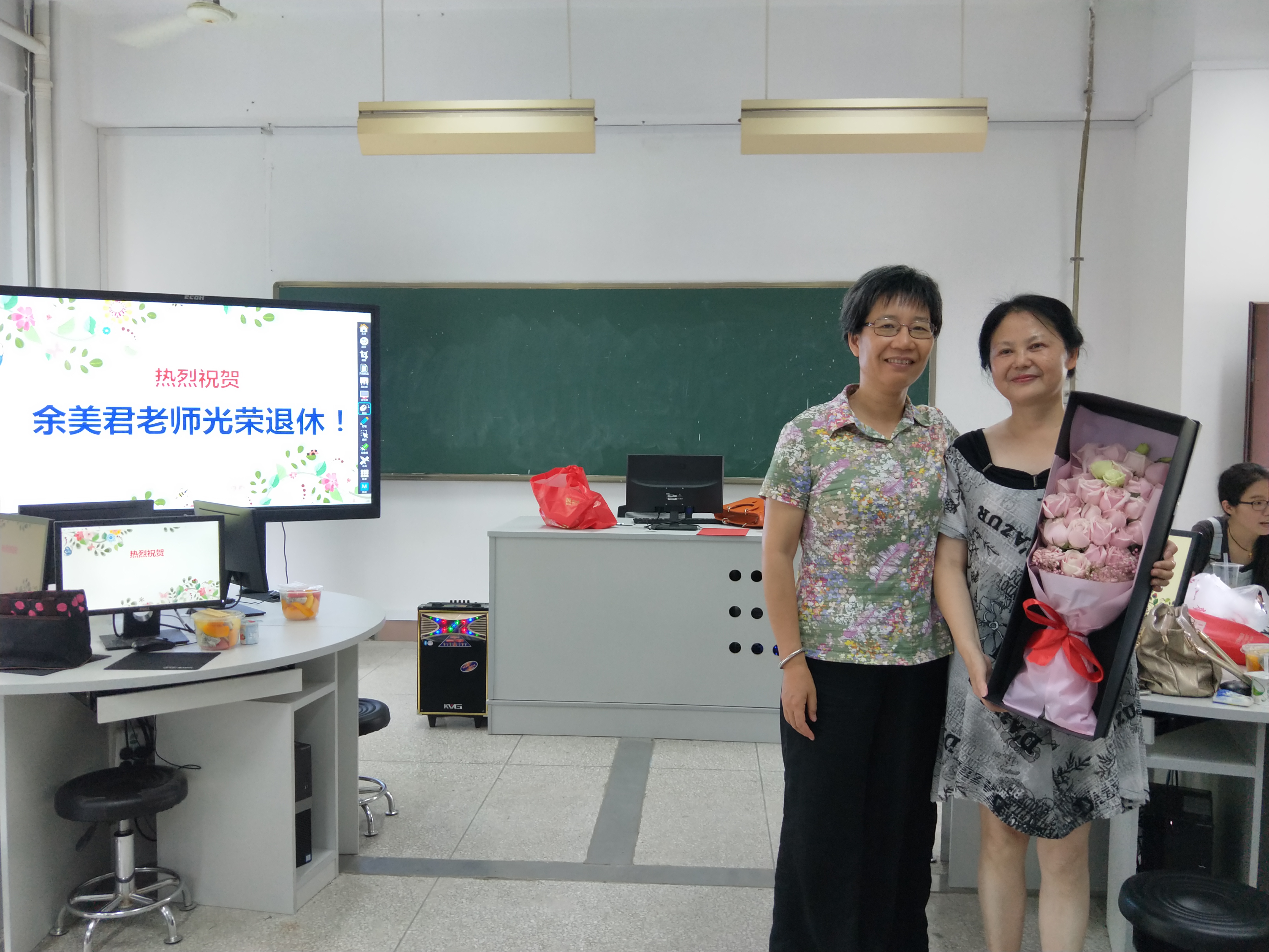 2018年6月28日,基础部全体教职员工欢聚305教室,共同欢送余美君老师光荣退休,欢送仪式由叶菁主任主持,叶菁主任首先代表基础部衷心感谢余美君老师为学院教育教学事业的辛勤付出,并由年轻老师向余美君老师送上鲜花,现场播放英语教研全体成员对余美君老师退休的临别祝福以及精心准备的海草舞表演,随后美君老师回忆在学校工作生活期间的点点滴滴,对系部以及同事们的关心表示感谢。欢送仪式在英语教研室全体教师的英文歌曲大合唱中圆满结束。