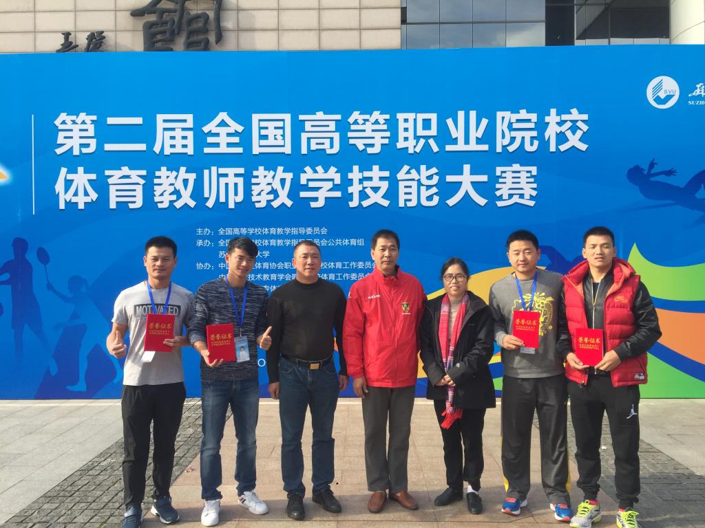 2017年11月23-27日,由教育部全国高校体育教学指导委员会主办的第二届全国高等职业院校体育教师教学技能大赛再江苏省苏州职业大学举行。教育部体卫艺司副司长巡视员廖文科,全国体育职业教育教学指导委员会主任委员、国家体育总局科教司原司长蒋志学,中国大学生体协专职副主席华爱军,国家体育总局科教司副巡视员谢燕歌,江苏省教育厅体卫艺处处长张鲤鲤,全国高等学校体育教学指导委员会顾问、上海交通大学体科所所长孙麒麟,国务院学位委员会体育学科评议组成员、全国学校体育专业委员会副理事长、全国高校体育教学指导委员会技术学科组组长王家宏教授等领导参加了开、闭幕式。