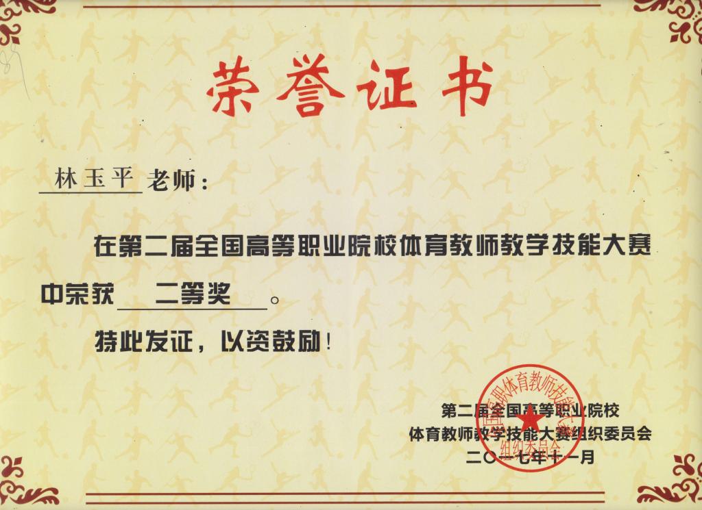 此次佳绩的取得,离不开院、系领导的关心支持,现代教育中心刘和莲和李刚明老师的帮助,体育组全体老师的悉心指导。在此,对林玉平老师表示热烈的祝贺,并对体育组全体老师的辛勤付出表示衷心的感谢!