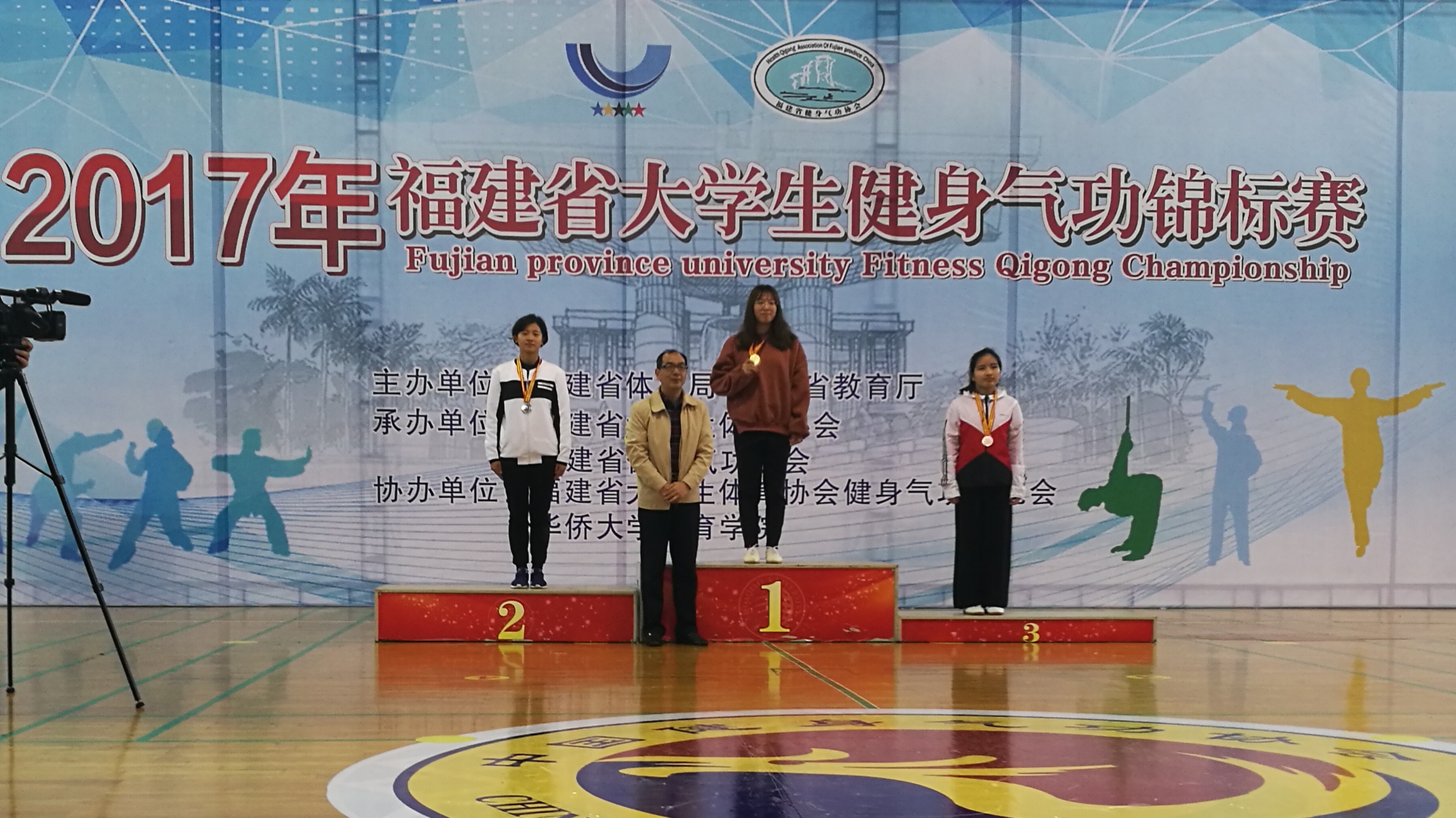 11月24—26日,福建省首届大学生健身气功锦标赛在华侨大学举行,本次比赛由省教育厅、省体育局主办,共有来自全省31所高校代表队,共187名运动员参加。在本次比赛中我院健身气功代表队6名队员不负众望,沉着冷静,用上佳的表现取得了优异的成绩,充分展现出了我院学生健康向上的精神风貌。