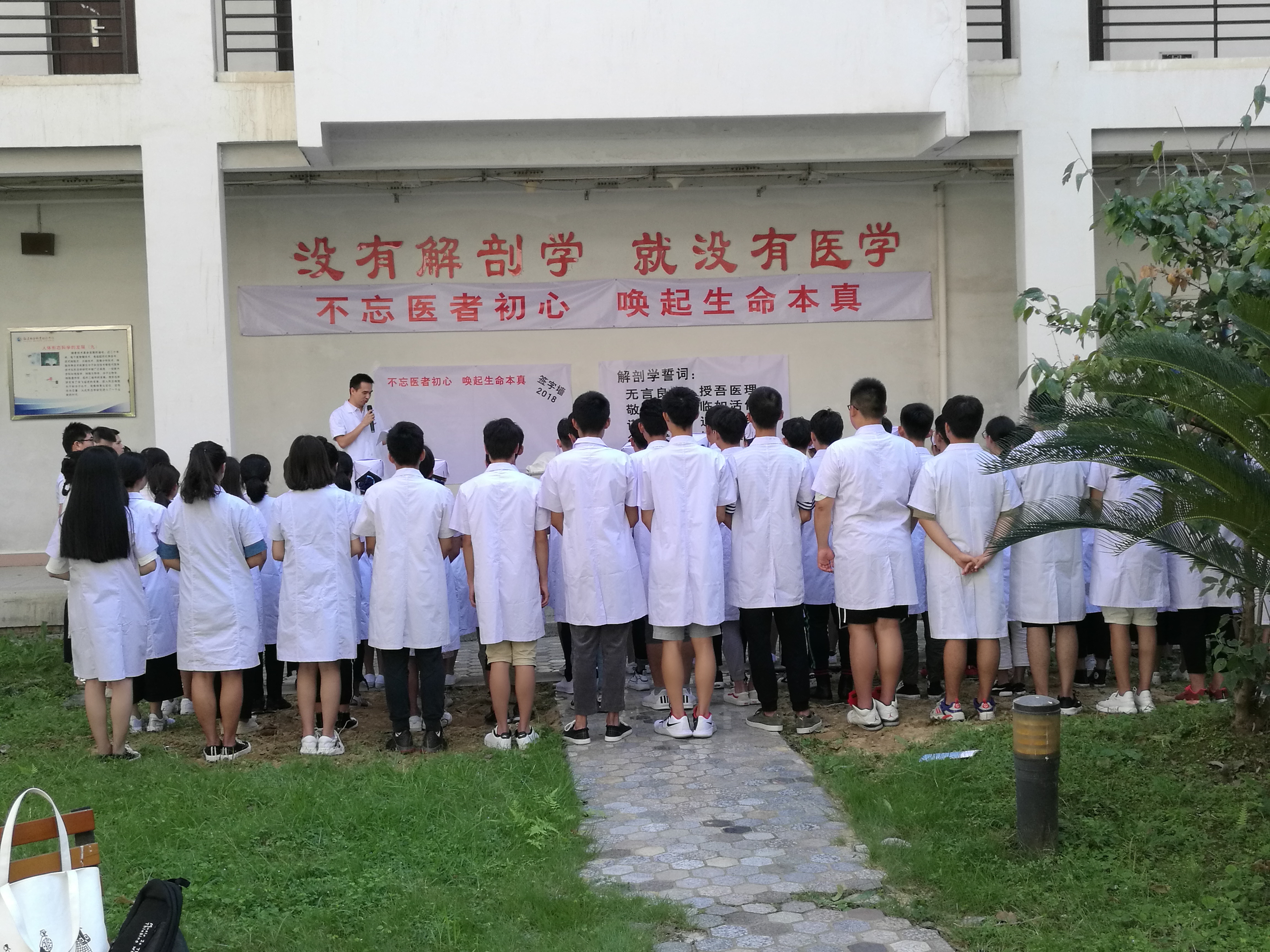 新生生命教育后续活动还包括所有医学生第一次进入解剖学实验室,开始学习观察人体标本之前,举行默哀致敬,医学生解剖学誓词的宣誓活动等,通过这一系列生命教育主题活动,进一步增强医学生的社会责任意识、生命责任意识、敬业意识和诚信意识,为将来成为一名具备良好素质的医务人员而奠定扎实的基础。