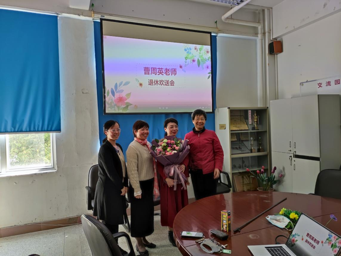 活动的最后,大家为曹周英老师送上了鲜花,衷心祝愿曹周英老师退休后的生活更加多姿多彩,幸福美满。整个欢送会洋溢着和谐、欢乐的气氛。