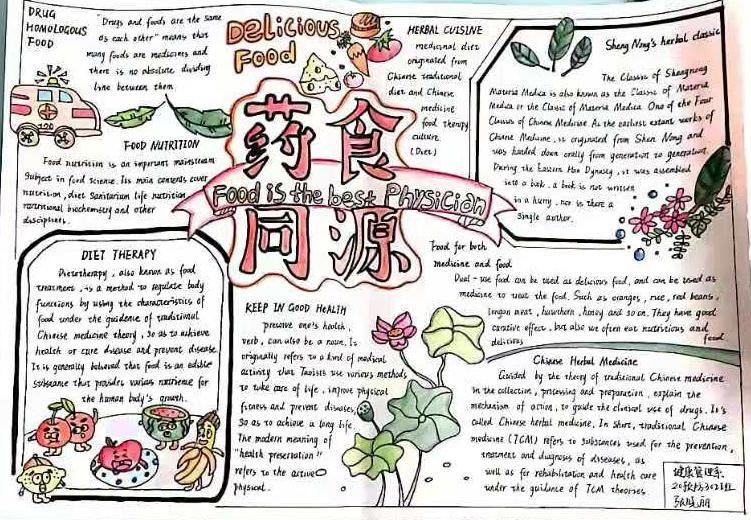 为弘扬优秀中华文化,增彩校园文化生活,传承中医经典文化精髓,增加同学们对中药的了解,让药膳走进同学们的生活,同时,以赛促教,提高同学们的英语写作水平及英文书写技巧,人文教学部外语教研室指导英语俱乐部于4月24日至5月10日期间开展“礼敬中华·春暖杏林”英文手抄报大赛。