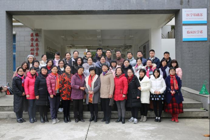 2018年2月1日,基础部305教室内欢歌笑语不断,基础部在此举行新春茶话会暨陈玲珑教授光荣退休欢送仪式,茶话会由叶菁主任主持,叶菁主任首先代表基础部衷心感谢陈玲珑教授在40多年工作中的无私奉献,同时现场PPT循环播放陈玲珑教授在学院生活及教学中的精彩瞬间,接着由解剖教研室主任吴碧莲老师带头,大家纷纷对陈玲珑教授表达自己衷心的祝福,并由年轻老师向陈教授献花,会上陈玲珑教授展示双手同时画器官的高超技能更让现场老师赞叹不已,随后陈教授发表讲话,对系部关心表示感谢,并结合自己40年的执教生涯以及多年参与政协参政议政工作对现场年轻老师提出了殷切的希望。茶话会在解剖教研室全体教师的歌曲大合唱中圆满结束。