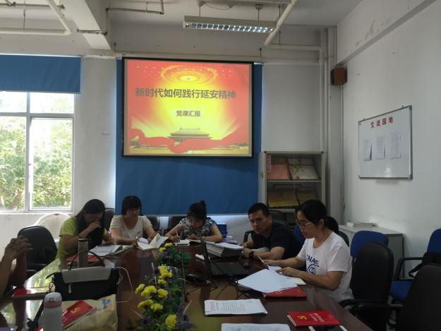 为深入学习贯彻习近平新时代中国特色社会主义思想和党的十九大精神,9月20日,直属基础部党支部阮秋容书记给支部全体党员上了一堂题为“新时代如何践行延安精神”的党课。