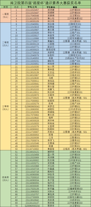 附:闽卫院第四届“超星杯”通识素养大赛获奖名单