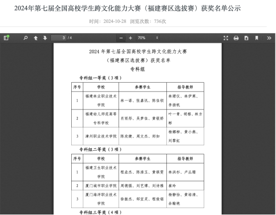 2024年10月25日至27日,备受瞩目的第七届“外教社杯”全国高校学生跨文化能力大赛福建赛区决赛在风景如画的海滨城市厦门集美大学成功举办。此次大赛汇聚了来自全省本科及高职院校的42支精英团队,共同展示了他们在跨文化交际领域的卓越才能和丰硕成果。