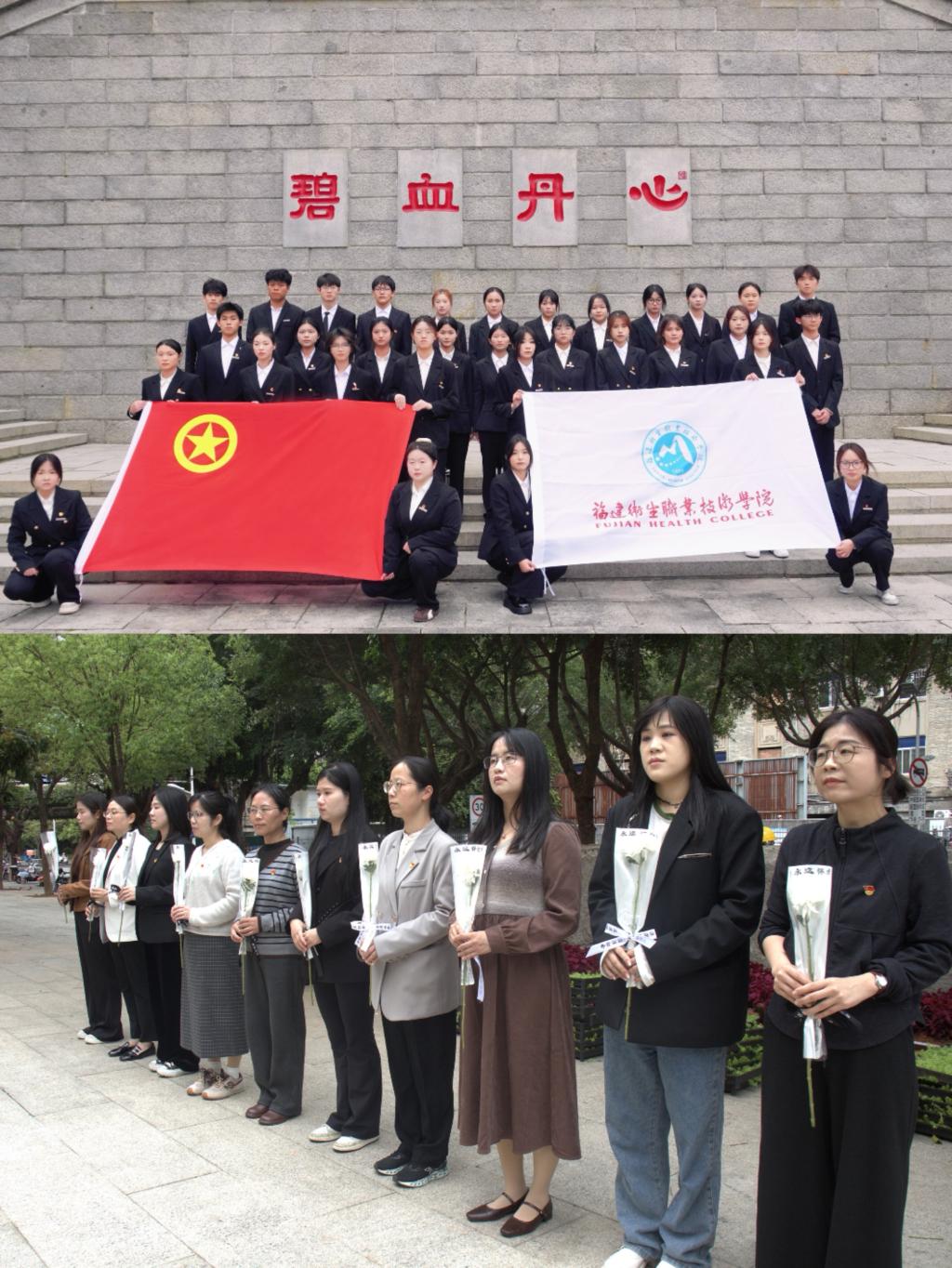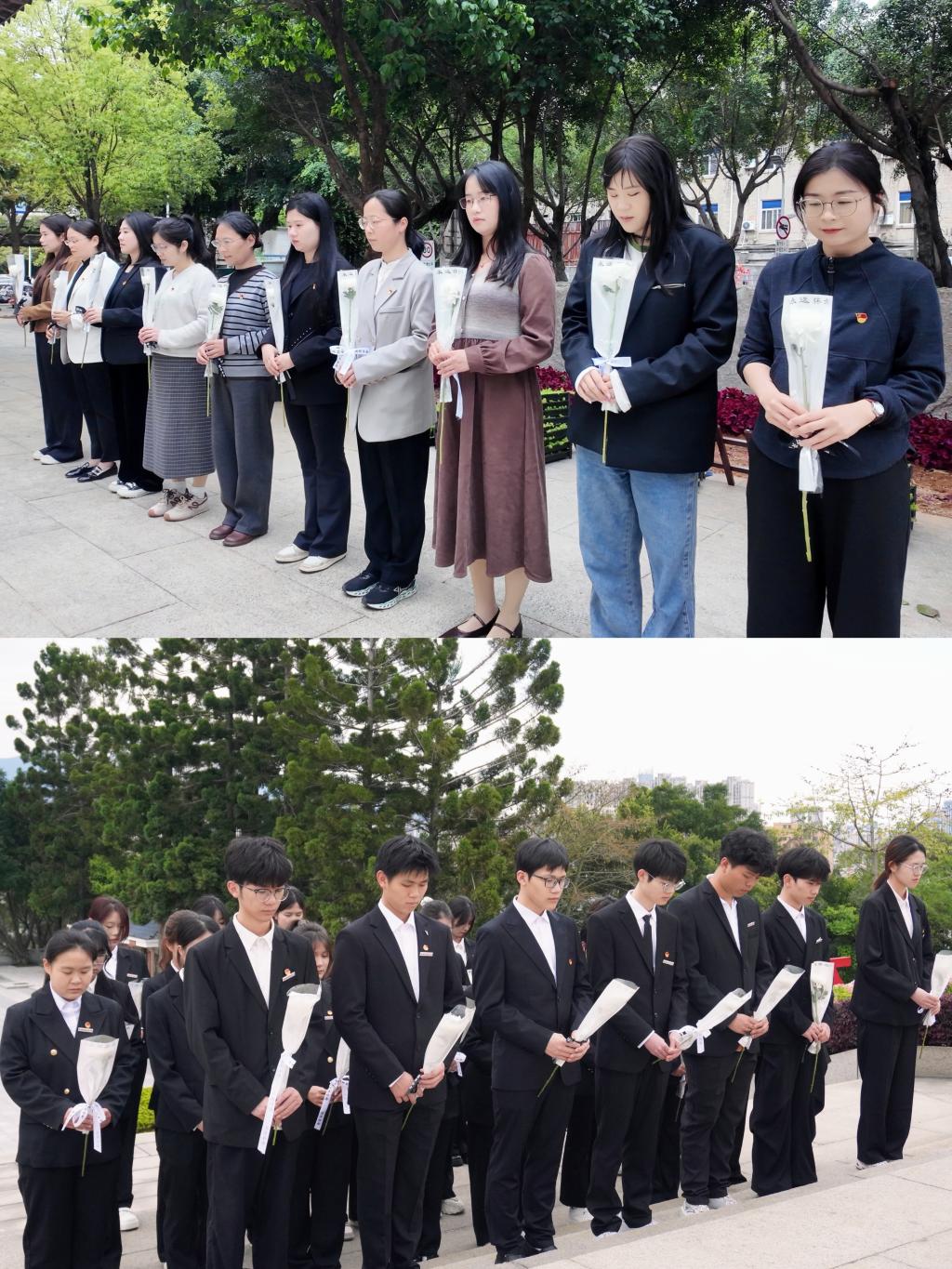 活动现场庄严肃穆,全体党员教师与50名青年学生代表肃立默哀、三鞠躬,向革命先烈致以崇高敬意和深切追思,随后依次敬献白菊,铭记先烈爱国初心,感悟革命先辈崇高气节。
