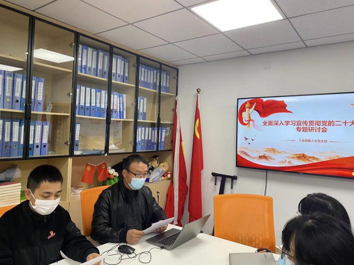 2022年12月15日,工会、团委、人文教学部党支部在青年之家会议室召开全面深入学习宣传贯彻党的二十大精神专题研讨会,党支部书记林桂松主持会议,全体党员参加会议。