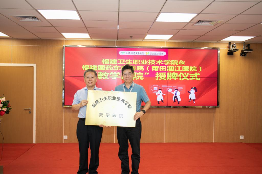 7月12日上午,副校长陈贞健带领药学院副院长肖健、医学技术系党总支副书记林燕、医学系马清璇副教授、实习实训中心卞祖安科长一行5人赴莆田涵江医院举行教学医院授牌仪式。莆田涵江医院领导班子、职能科室负责人以及临床教师代表出席仪式。