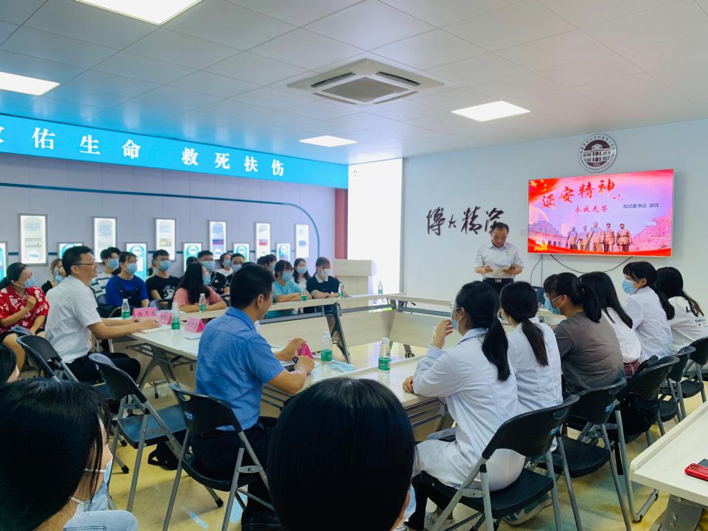 在福建医科大学附属第二医院,游锋为在院实习的45位学生上了一堂生动严肃的专题党课《延安精神,永放光芒》,重温百年党史,同学们表示,今后将向先辈们学习,要把个人理想追求、职业发展融入到党和国家事业之中,勇担当、勤奉献,用实际行动为家乡建设发展、为人民群众办实事、解难题。