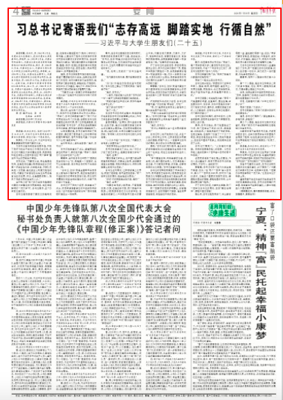 采访组:听完同学们的汇报,习近平总书记发表了即兴讲话,请回忆一下讲话的内容。