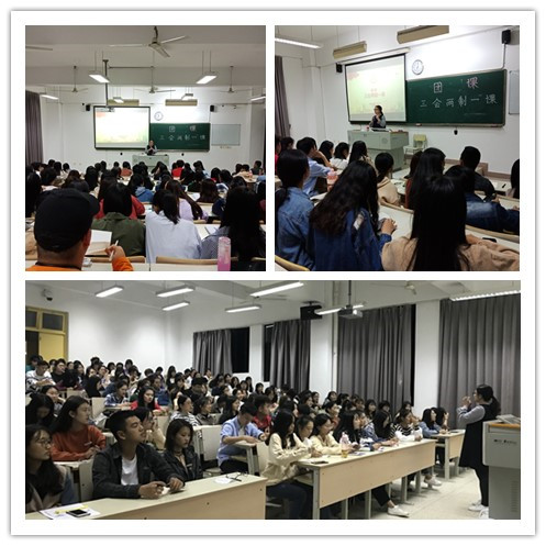 李宝珠老师向大家介绍了“三会两制一课”的基本内涵及意义。“三会两制一课”即支部大会、支部委员会、团小组会;“两制”即团员教育评议工作制度、年度团籍注册制度;“一课”是指团课。这项工作是团组织对团员进行思想政治教育和团员自我教育的具体形式,是加强团的思想建设的重要途径,是保证基层团组织正常开展组织生活、活动和工作的基本要求。课上,李宝珠老师还通过播放视频和现场问答的方式,与各班团干部进行互动交流,强化大家对于这一工作的认识。