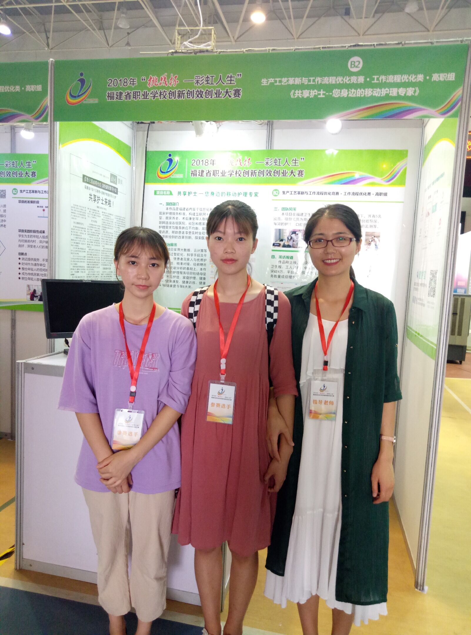 6月8日至9日,在泉州市举办2018年福建省职业学校“挑战杯——彩虹人生”创新创业大赛,我系创新创业项目《共享护士——您身边的移动护理专家》荣获高职组特等奖,项目负责人16级护理专业许燕玲,项目成员有17级护理专业连婉纯和17级助产专业陈静怡,项目指导老师为管理系李其铿老师和我系吴婷婷老师。