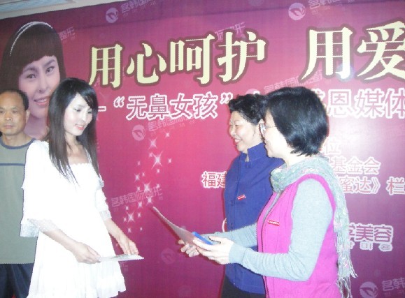小英3岁时被老鼠咬伤,鼻头缺失,嘴上也留下深深的伤痕。由于家境贫困加上相貌缺陷,小英在初中学习即将完成时被迫辍学。为给小英治病,小英父女来到福州,父亲辛劳苦作换来的只是杯水车薪。懂事的小英为减轻父亲的负担,低薪求职却仍然四处碰壁。后来小英被媒体发现,她的故事牵动着社会各界爱心人士的心,名韩医学美容机构为她进行了免费整形,我院得知此情况后,也决定帮助小英。经过学院专题会议讨论,决定接收小英成为我院2012级中职学生,并为小英免去学费、住宿费和书籍费用。