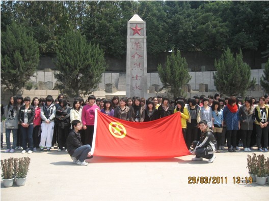 2011年3月29日中午12点50分,护理系第五期、医学技术系第四期新团员入团宣誓仪式在革命烈士陵园隆重举行。护理系林桂松老师主持本次宣誓仪式。此次我系参与业余团课的同学共111位同学,通过考核,有88位同学顺利结业。桂松老师在宣誓仪式上宣读业余团校结业学生名单,唐红同学代表全体团员进行发言,她表示今后一定会认真学习好团的知识和精神,以饱满的热情积极向党组织靠拢,不辜负党组织对他们的期望。团员青年们以严肃认真的态度在人民英雄纪念墓前庄严宣誓,并向革命烈士默哀了3分钟,随后在庄严的团歌声中拉下帷幕。