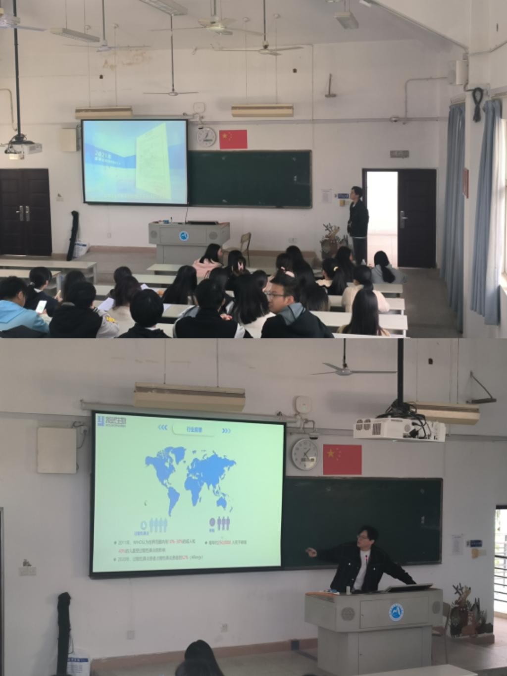 浙江我武生物科技股份有限公司主营创新药物,发展具有重大的技术优势或市场优势的创新药物或具有类医药功能的产品、新医疗器械。与我们药学院药品生产技术专业十分对口。宣讲会上公司代表首先为同学们播放了宣传片,让大家对公司有了大概的了解,接着幽默诙谐地解释了公司为什么叫“我武”,而不是“你武”,“他武”。引起大家对公司的兴趣之后,公司代表从公司简介,战略定位,企业文化,重点领域,在研产品,未来发展和市场前景等多方面向大家细致完整地介绍了公司。