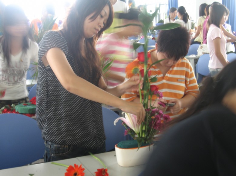 在同学们的积极参与下,本次插花比赛取得了圆满成功。此次活动不仅丰富了课余文化生活,陶冶了情操,激发了创作热情,而且进一步提高了同学们爱国热情。