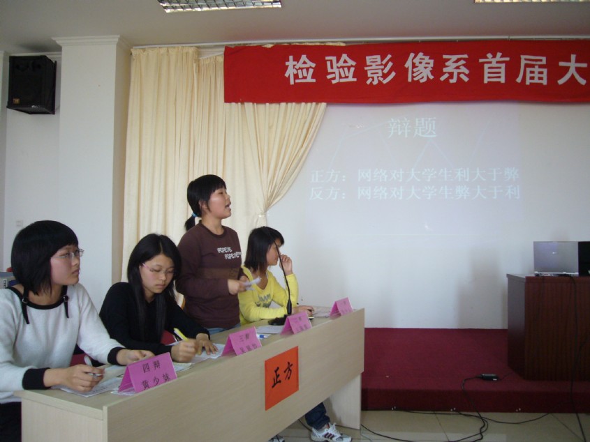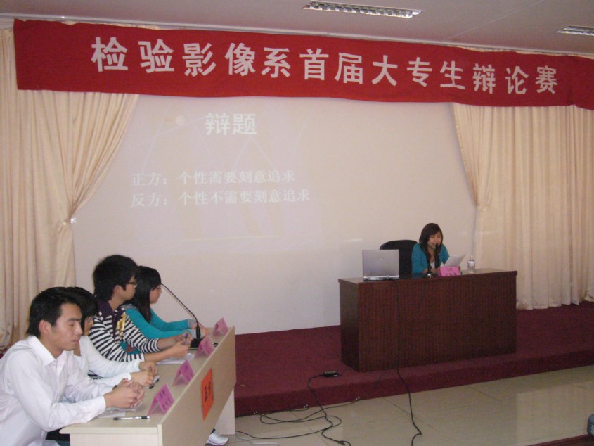 检验影像系于4月8日下午2:00在行政楼六楼会议室举行了首届大专生辩论赛的两场复赛。本次比赛采用新加坡赛制,严格计时,分为程序发言、自由辩论以及总结陈词。