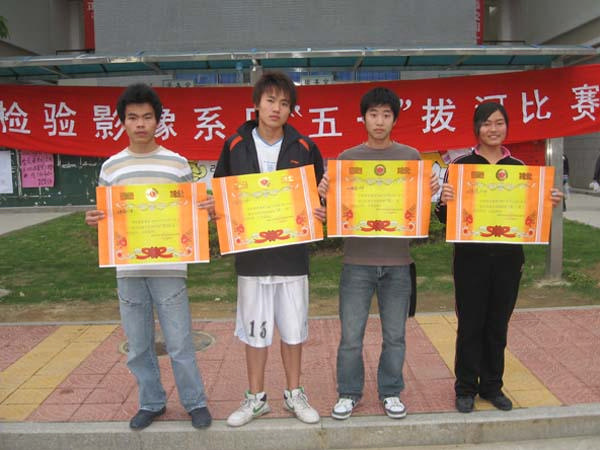 检验影像系于2007年4月26日下午在教学楼205举行了“魅力男生、女生”预选赛,本次活动有10余名选手参加,通过“个性才艺,你我争风”、综合知识问答、形象展示和“寻找同伴,同舟共济”4轮的比赛,最终评选出一、二、三等奖、鼓励奖和最佳人气奖。