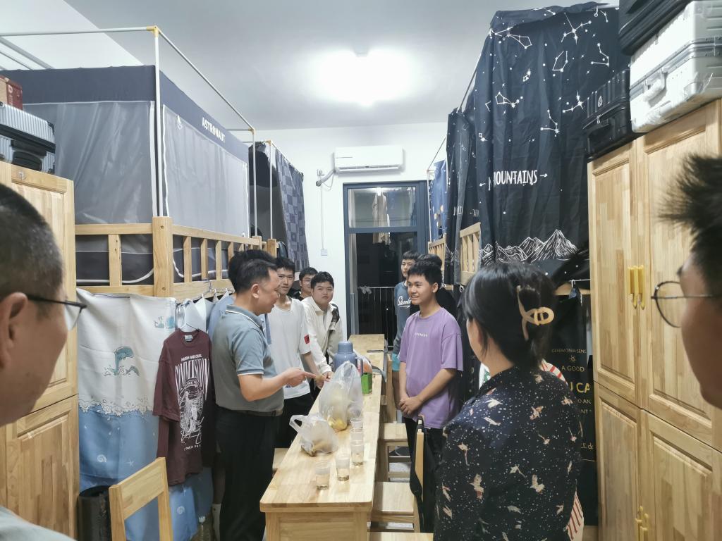 会后,曾武祈书记走进10号楼403、401宿舍,认真倾听同学们的意见建议以及生活上学习上的烦恼,一起谋求合理的解决方案,现场发放带有闽卫院logo的书袋以及闽卫院手绘地图,鼓励同学们在未来的路上勇往直前,规划好人生理想目标,不惧艰难险阻,树立乐观向上的心态。同学们近距离感受到曾书记的平易近人和蔼可亲,同时也感受到闽卫院带给大家的如家一般温暖。