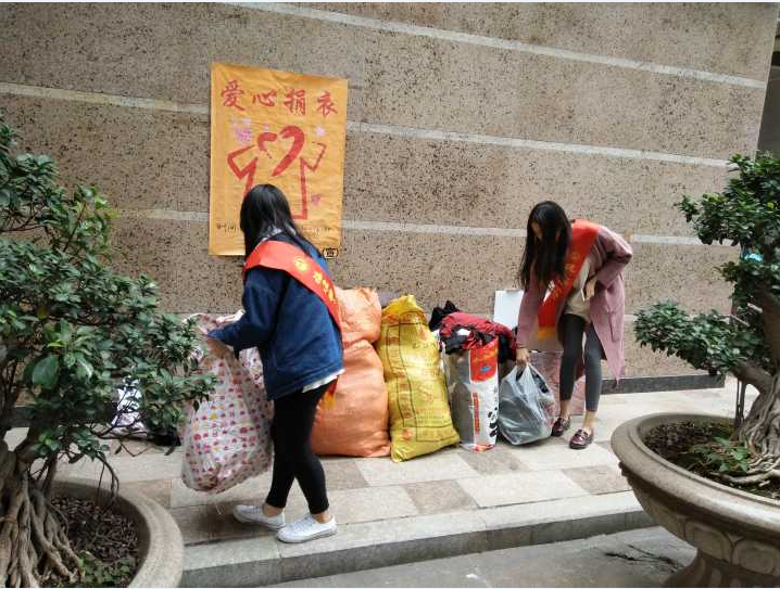 同学们笑脸盈盈地走进社区,热心地向小区居民讲述此次捐衣活动的细节及意义,并通过张贴海报的形式进行宣传。热情的小区居民得知活动后,纷纷回家收拾旧衣物送到捐赠点,或许这些衣服不昂贵,不新亮,可是却“衣旧温暖”。还有一些居民因为时间紧急没来得及捐赠衣物,但他们也向我们同学询问了捐赠地址希望为贫苦地区的人们献出自己的一份爱心。仅一天,居民们捐赠的衣服聚集成堆。这是一份爱心,也是一份力量。活动接近尾声,同学们将居民们所捐赠的衣物统一装车送到慈善机构,再由慈善机构发送到贫苦地区给那些需要的人们,让他们感受不一样的温暖,也让他们知道再苦再难坚持下去就会有希望,我们会是他们坚强的后盾。