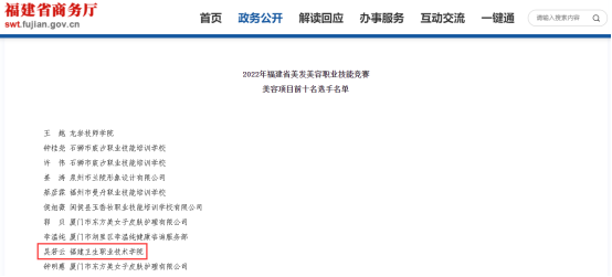 12月3日-4日,2022年福建省美发美容职业技能竞赛美容项目在福州举行,本次大赛设有理论考试、实操比拼,来自全省各地的优秀选手们积极参赛,现场比拼美容技能。我系医学美容技术专业吴若云老师荣获第九名。