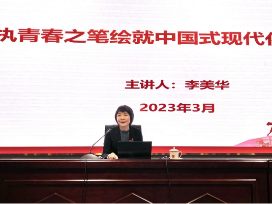 李美华勉励青年学子要坚定不移听党话、跟党走,深刻领会中国式现代化的中国特色和本质要求,争做有理想、敢担当、能吃苦、肯奋斗的新时代好青年,让青春在实现中华民族伟大复兴的中国梦征途中绽放绚丽之花。