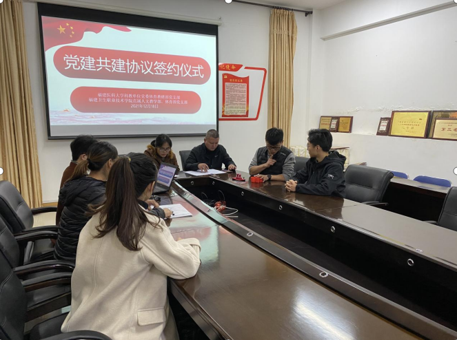 为深入学习贯彻习近平新时代中国特色社会主义思想,全面贯彻落实新时代党的建设总要求。进一步巩固学习实践活动成果,深化“创新争先”活动,12月18日,直属人文教学部和体育部党支部与福建医科大学科教单位党委体育教研部党支部在福建医科大学体育办公室举行共建协议签约仪式。直属人文教学部和体育部党支部书记阮秋容和支部党员、福建医科大学体育教研部副部长梁丹等参与会议。