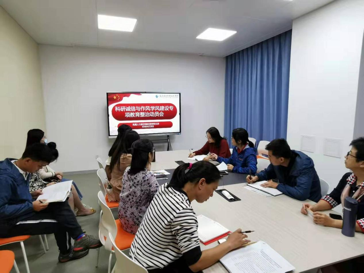 近期,直属人文教学部和体育部党支部通过专题学习、小组学习、线上学习等方式组织开展师德师风、科研诚信及学术道德规范学习活动。10月28日,直属人文教学部和体育部党支部开展“科研诚信与作风学风”建设专项教育整治动员会。此次活动由直属人文教学部和体育部党支部书记、“双带头人”教师党支部书记工作室负责人、体育部负责人阮秋容主持,支部全体党员参加。