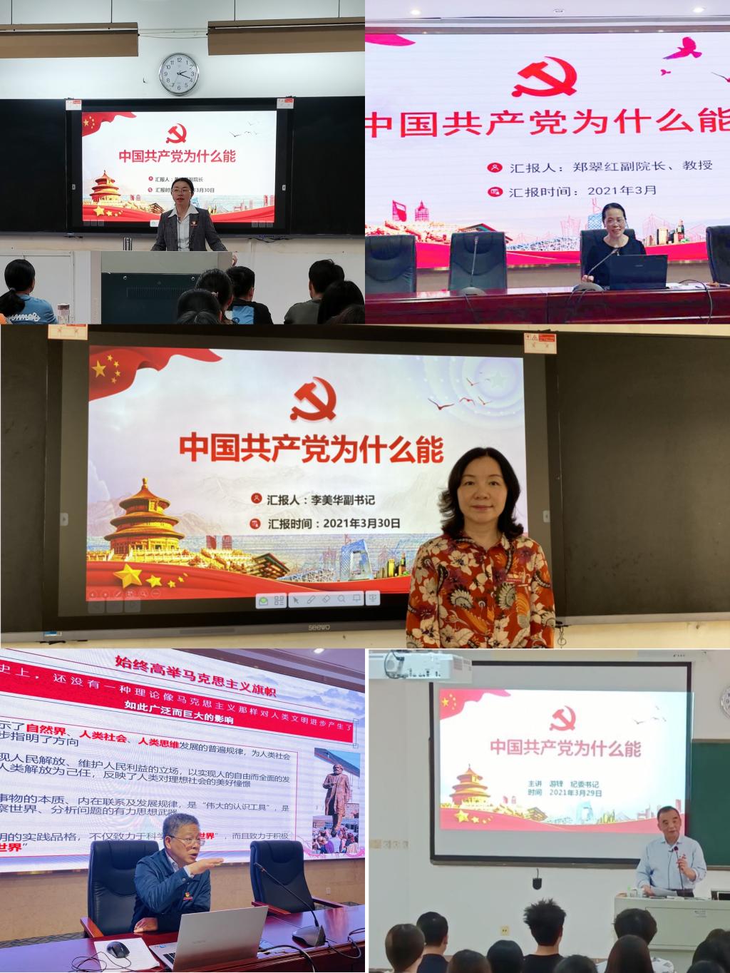 党委副书记李美华、纪委书记游锋、副院长陈贞健、黄铭珊、郑翠红等校领导从中国共产党具有科学的理论指导、坚定的理想信念、强大的组织优势、坚实的群众基础、彻底的自我革命等五个方面,全面阐述了中国共产党创造中国奇迹的原因所在。校领导的开讲,引起了开云师生的广泛热议。