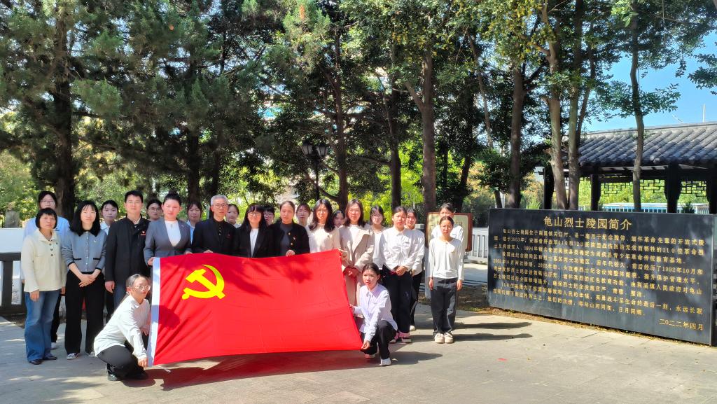 签约仪式结束后,双方携手前往龟山烈士陵园开展“缅怀革命先烈 传承红色基因”主题党日活动。全体党员怀着崇敬的心情,列队站在庄严肃穆的革命烈士纪念碑前;奏唱中华人民共和国国歌,向革命先烈默哀致敬;党员代表与学生代表共同向烈士纪念碑献花;党员教师代表讲述烈士事迹,结合党的二十大精神谈初心使命;学生代表发表感言,深切表达传承革命精神的决心;随后参观陵园,擦拭烈士墓碑,清扫陵园。通过此次活动,进一步弘扬爱国主义精神,增强党员和学生的历史责任感和使命感。