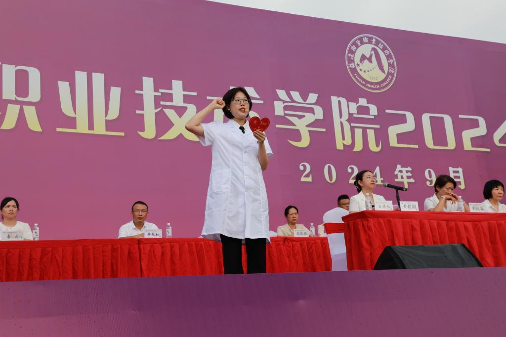 2024级健康大数据服务与管理专业的蔡开宁同学作为新生代表发言。他娓娓道来与闽卫院的相遇,驻足校训石前的思悟,走进校史馆的震撼,感受师生们的温暖,体会百十年学府的底蕴,认定这里就是最好的安排,坚信在这里他们将为自己的青春写下无悔的大学篇章。