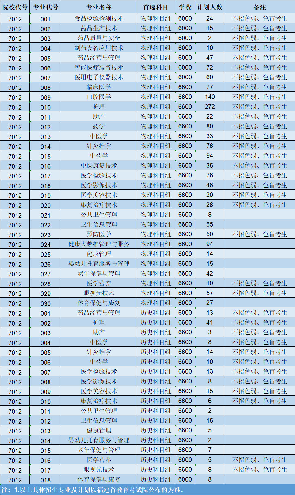 2025年福建省普通高考分专业招生计划表(定向专业)