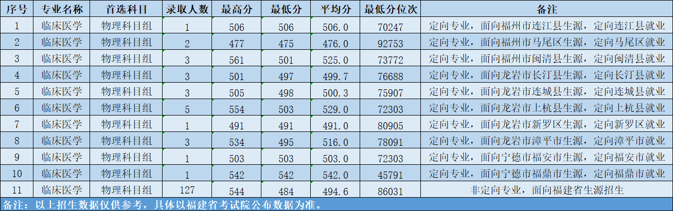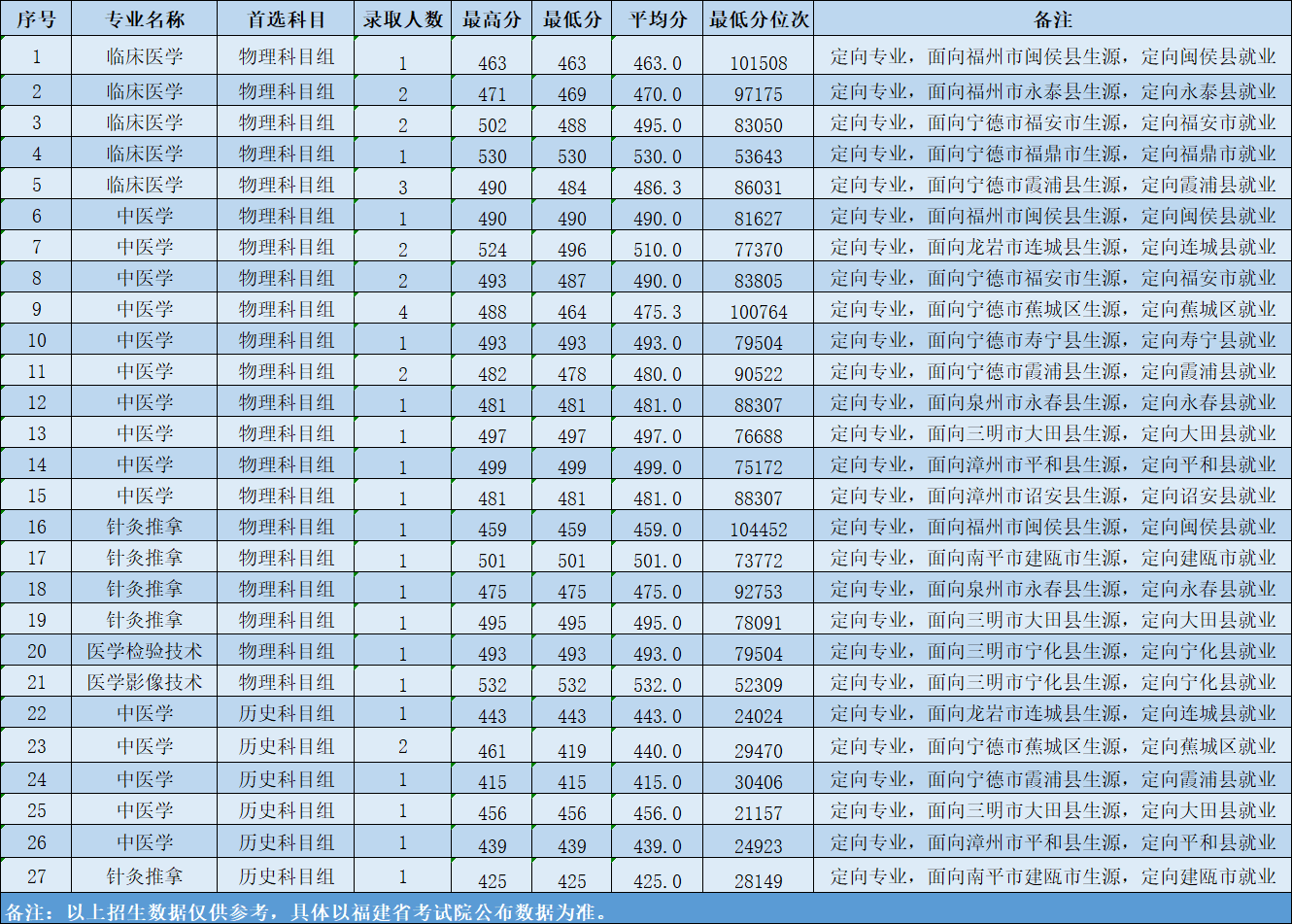 2024年福建省录取分数及位次情况(定向专业)