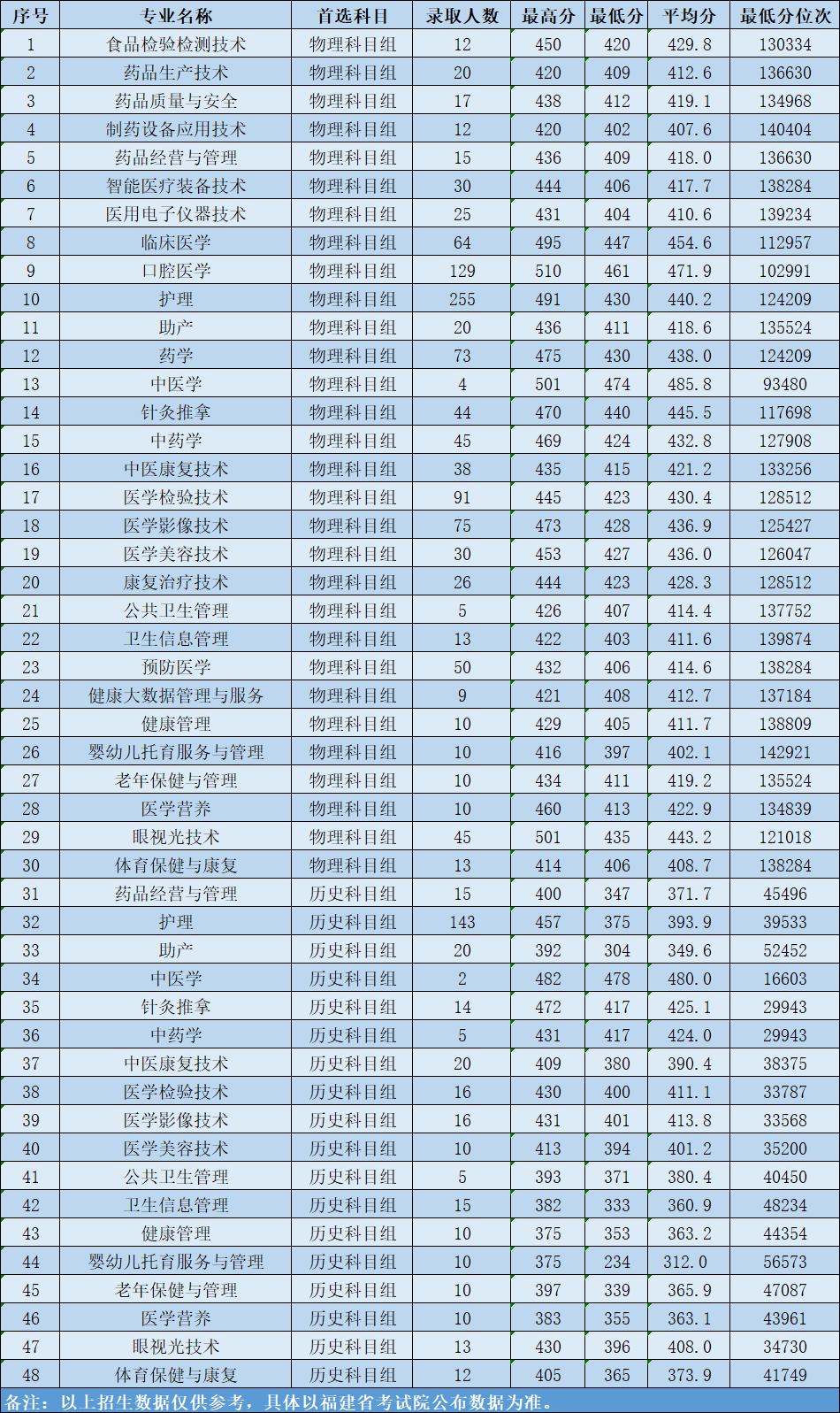 2024年福建省高职本科贯通人才培养项目录取分数及位次情况