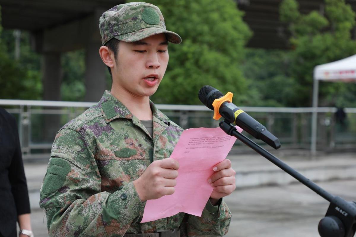参训教官代表要求教官团队严格按照军训大纲执行任务,希望同学们能以军人的身份严格要求自己,把训练中的收获转化为前进的动力。