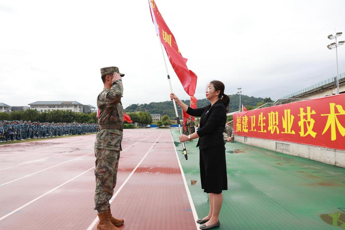 最后,黄铭珊向参训的45支队伍授予军训连队旗帜,2025级新生军训正式开始。