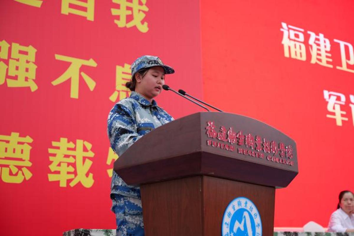 2025级检验302班李妍漪同学作为军训优秀学员代表发言,她分享了自己在军训中从 “体能不支” 到 “咬牙坚持” 的成长历程,感恩教官的严格教导与同学的互助支持,并代表全体2025级学生承诺,将把军训中养成的优良作风转化为学习动力,以青春之我、奋斗之我,在大学征程中书写精彩篇章。
