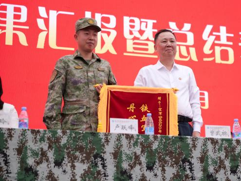 为感谢承训部队及教官的辛勤付出,校党委书记曾武祈代表学校向承训部队赠送锦旗。