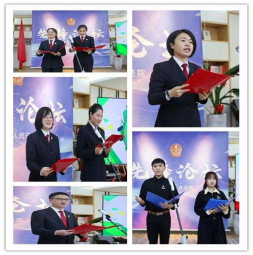 视频学习后,学校团学干部与法院党员干警分别诵读了部分红色经典诗词。《可爱的中国》《祖国啊我亲爱的祖国》《五月鲜花》《沁园春·雪》《红色家书》等一首首荡气回肠的经典诗篇,无一不抒发着对党和国家的无限热爱、对民族复兴的美好憧憬。诚挚的情感感染着在场的所有人,仿佛让大家回到了那个激情燃烧的红色年代,感受到了革命先辈的家国情怀和使命初心。