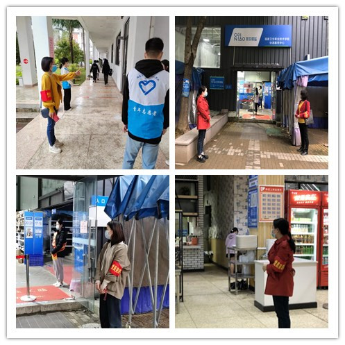 在校园全员核酸采样过程中,学生工作部党员奋战在一线,协助做好前期院系核酸安排,现场做好外围排队引导,学生核酸检测信息登记、体温检测等,高效、有序地完成了有关工作。在常态化校园生活中,还深入到明湖餐厅、快递驿站、校园超市等开展疫情防控和相关政策宣传,引导师生按位就坐,有序排队,做好疫情防控的“督导员”。