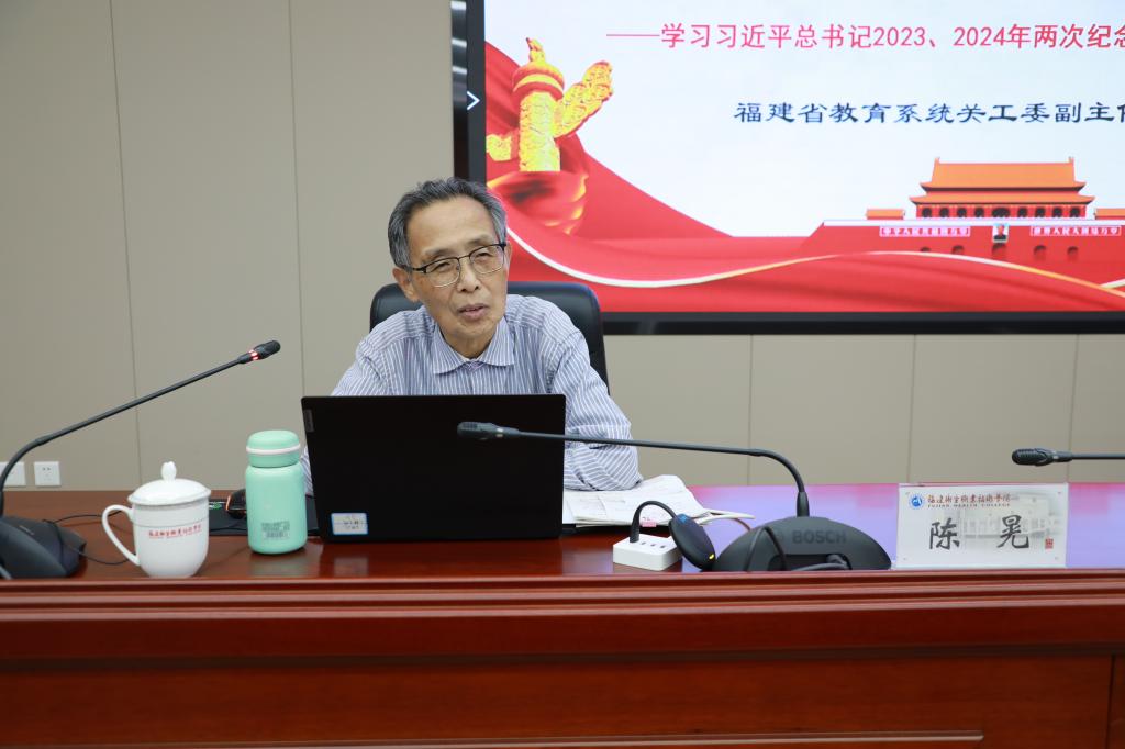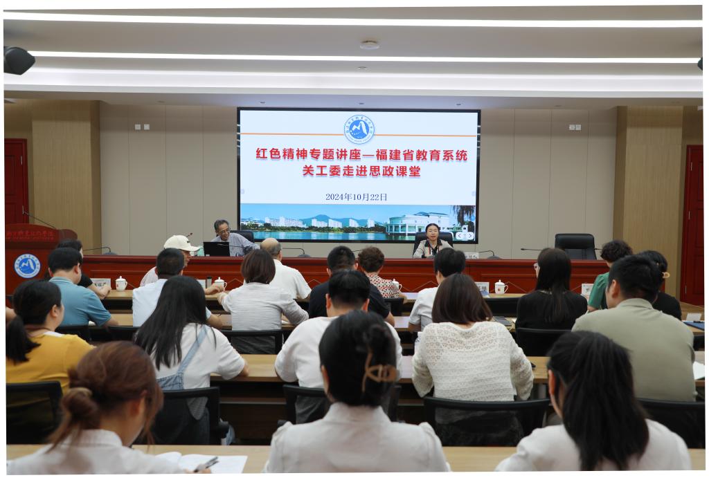 为深入学习贯彻习近平新时代中国特色社会主义思想,发扬红色传统,传承红色基因,引领师生继续坚定跟党走、建功新时代,10月22日,开云关工委邀请福建省教育系统关工委主任陈晃走进学校思政课堂,为校师生代表举办红色精神专题讲座,福建省教育系统关工委副秘书长、办公室主任罗永倩陪同。校关工委主任严肃、副主任陈雄出席讲座,校关工委、二级学院关工委、学生工作部党支部、团委负责人、辅导员代表和学生代表共100余人参加讲座,讲座由副校长、校关工委副主任黄铭珊主持。