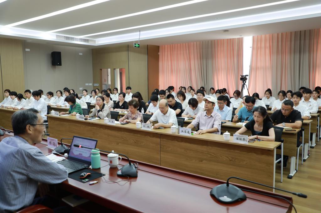 陈晃以《把毛泽东、邓小平等老一辈革命家开创的“中国式现代化”强国复兴伟业不断推向前进》为题,与师生共同学习了习近平总书记2023、2024年两次重要讲话精神。他带领师生一同学习党中央对毛泽东、邓小平建立伟大历史功勋高度评价的科学内涵,强调要结合实际深学细悟。他从实行党的群众路线、不断推进理论和实践创新、全面深化改革、贯彻新时代强军思想、深入推进全面从严治党、坚持和完善“一国两制”方针及始终高举和平、发展、合作、共赢旗帜等七个方面阐释了党中央对继承发展老一辈革命家开创而未竟的伟大事业的总体要求。最后,他结合学校育人实践,勉励新时代青年学子要立志把毛泽东、邓小平等老一辈革命家开创的中国式现代化复兴伟业不断推向前进。