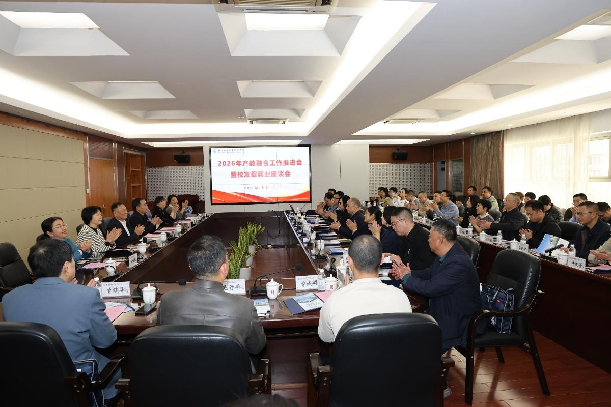 冬日暖阳,温情相聚。1月17日,学校2026年产教融合工作推进会暨校友促就业座谈会顺利召开。校领导、各界优秀校友代表、相关职能部门负责人和各学院党政负责人齐聚一堂,共绘母校发展蓝图,共商人才培养良策,共促就业提质增效。本次会议由校长徐伟主持。