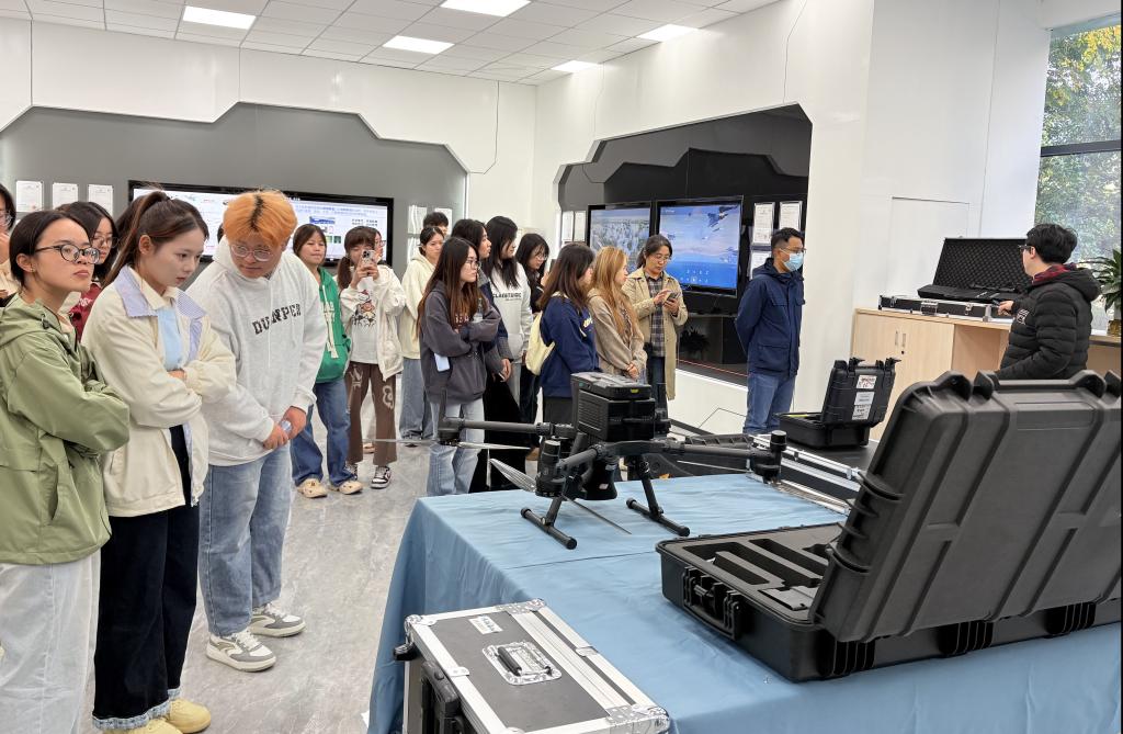 研学首站抵达大数据科技园B5栋,园区工作人员详解科技园整体规划、入驻企业布局及功能分区,让师生系统认知大数据产业集群运营模式。随后,师生走进园区入驻企业福建星网安信息技术有限公司,实地参观低空无人机安全防护技术研发场景,近距离观摩设备研发流程与核心技术,直观感受大数据在安全防护领域的创新应用,有效拓宽专业视野。